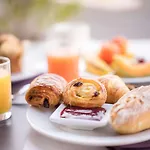 Гостям надають сніданок "шведський стіл". Гостей запрошують у готельний ресторан Quai Raphael.